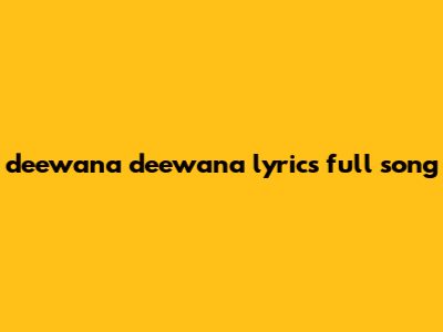 Deewana Deewana Lyrics Full Song